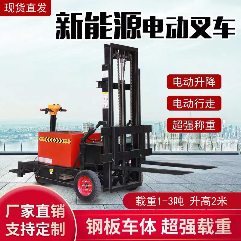 白银市小型电动叉车1吨站驾式2吨液压升高铲车全自动仓储堆高车